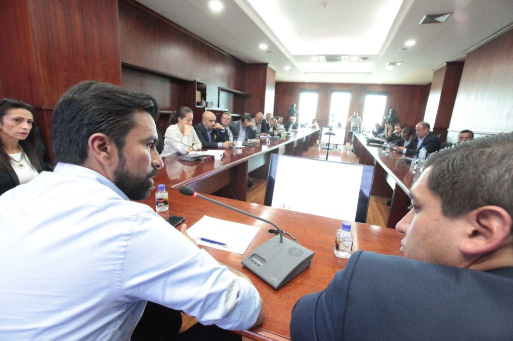 En la sala de juntas se reunió el gerente de Empresas Públicas de Cundinamarca S.A ESP., Andres Díaz Hernández con