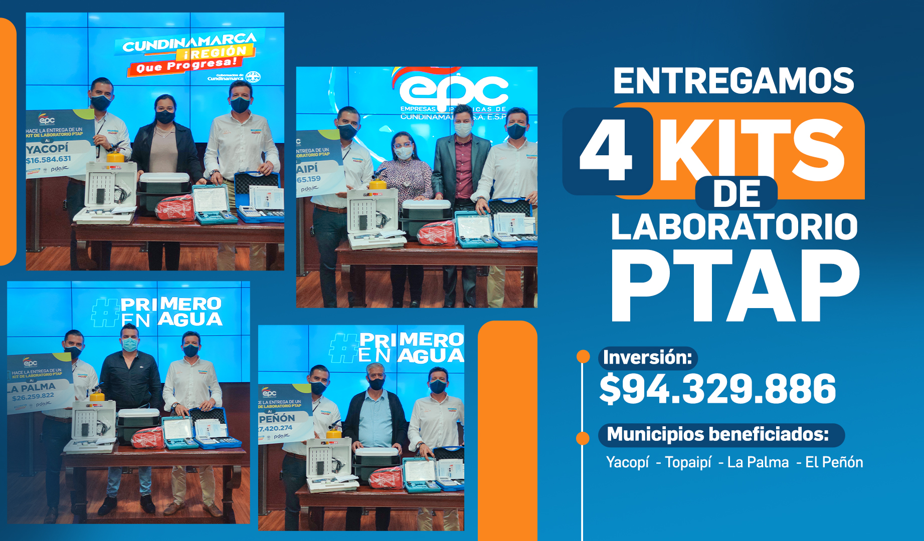En compañía de nuestro Gerente, Juan Eduardo Quintero entregamos 4 kits con equipos y reactivos de laboratorio para el monitoreo y control de la calidad de agua de los municipios de Topaipí, Yacopí, La Palma y El Peñón.