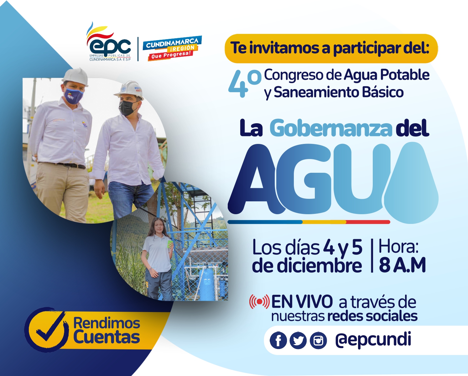 Empresas Públicas de Cundinamarca (EPC) confirmó que el 04 y 05 de diciembre realizará la IV versión de su congreso Agua para el Progreso; encuentro que convoca a los alcaldes, prestadores de servicios de los municipios, gerentes y funcionarios de empresas de acueducto, secretarios de medio ambiente, jefes de servicios públicos y líderes del sector de agua y saneamiento, para compartir los logros y estrategias qué se realizaron a lo largo del cuatrienio por medio de su agenda académica y cultural.