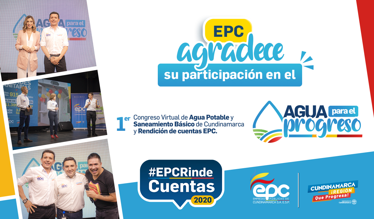 Con la asistencia de Alcaldes, Gerentes y funcionarios de Acueductos Municipales, Presidentes y Miembros de acueductos veredales, jefes de oficinas de Servicios Públicos y Secretarios de Planeación, cerramos con éxito “Agua para el progreso” el  1er congreso de Agua Potable y Saneamiento básico de Cundinamarca y rendición de cuentas EPC.